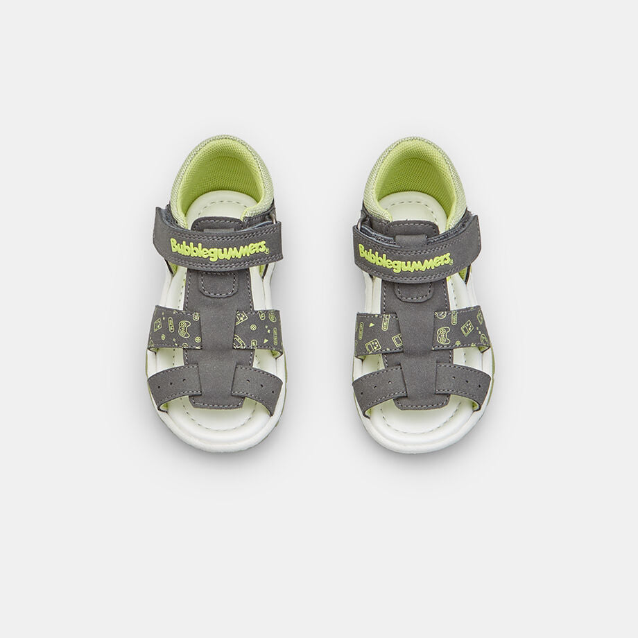 Sandalet për fëmijë Bubblegummers me velcro bashkojnë rehatinë dhe stilin për më të vegjlit. Të realizuara me materiale sintetike cilësore për pjesën e sipërme, astarin dhe shollën, ato ofrojnë qëndrueshmëri dhe lehtësi ideale për verën.Rripi me velcro siguron një përshtatje të sigurt, ndërsa sholla prej 2 cm garanton stabilitet gjatë çdo hapi. Perfekte për të shoqëruar aventurat e përditshme me një prekje gëzimi.