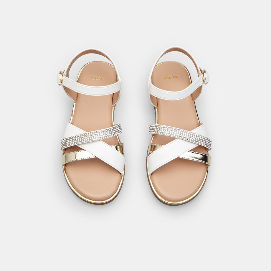 Elegante dhe praktike, sandalet për vajza Bata me rripa të kryqëzuar bashkojnë stilin dhe rehatinë për ditët e nxehta të verës. Të realizuara tërësisht nga material sintetik, ato ofrojnë lehtësi dhe qëndrueshmëri, duke garantuar një përshtatje të sigurt dhe ajrosje të mirë.