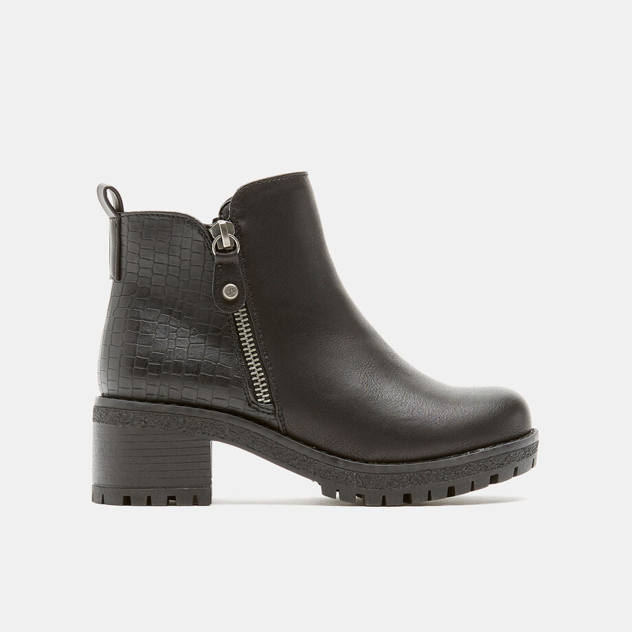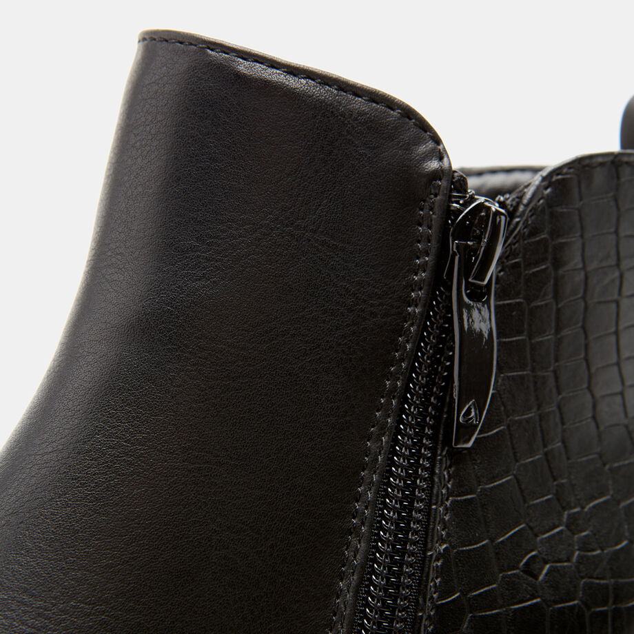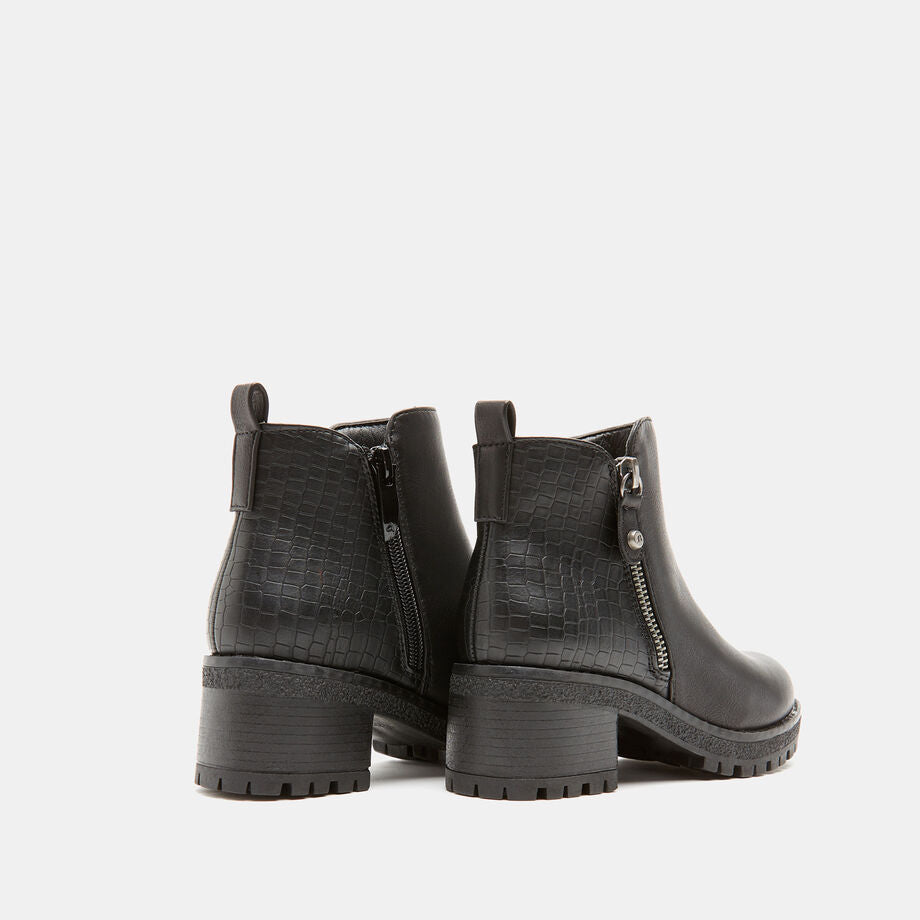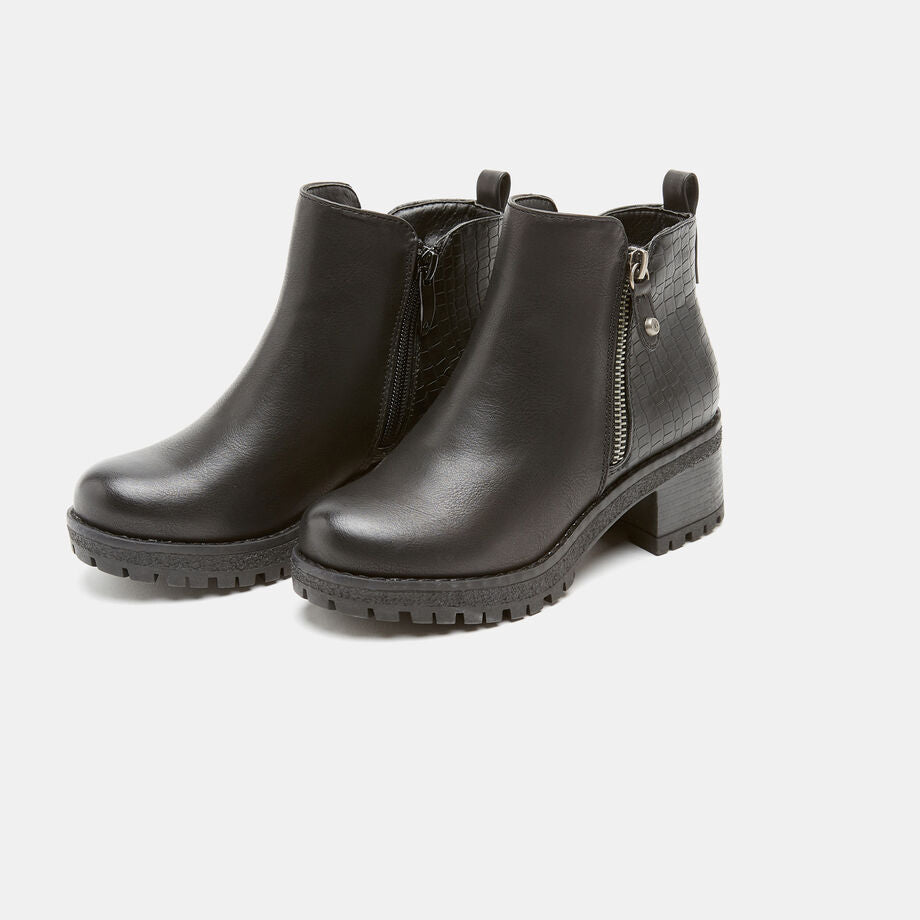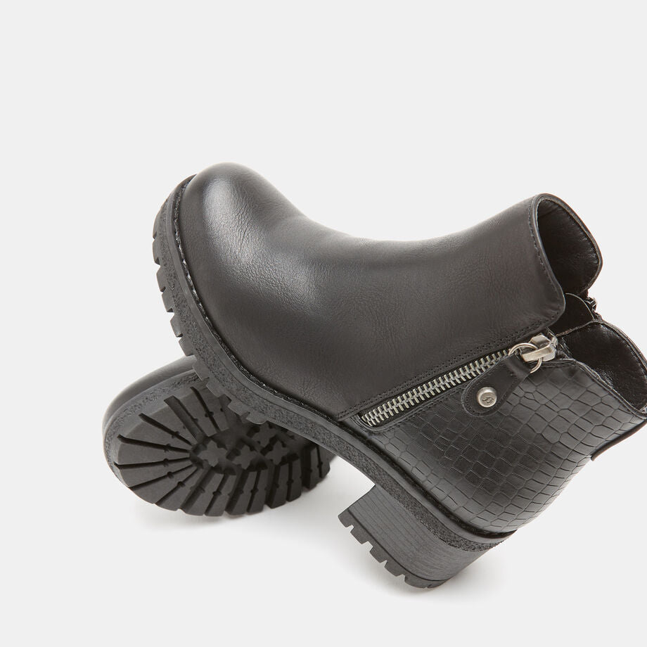 Stivalete për vajza prej lëkure sintetike me taban të tipit track, zinxhir anësor dhe efekt piton në të njëjtin ton në pjesën e pasme.taka 5 cm gjatesia e qafes 10 cm