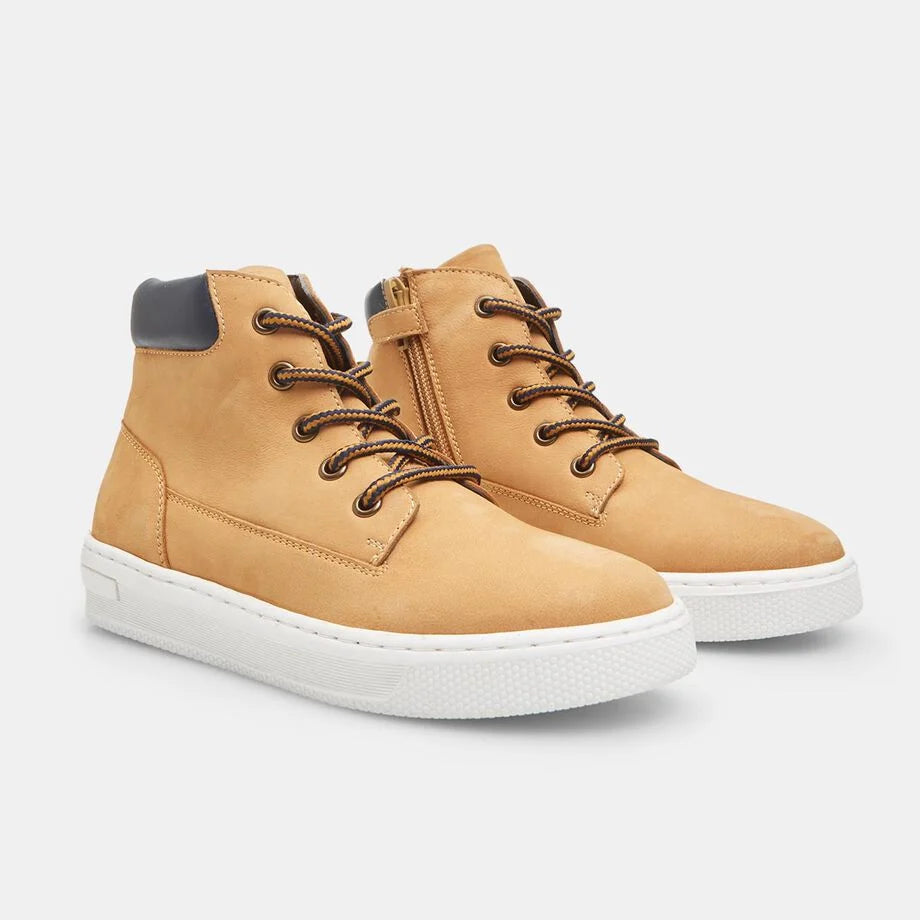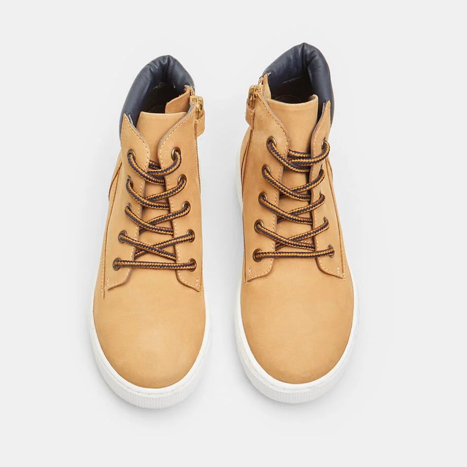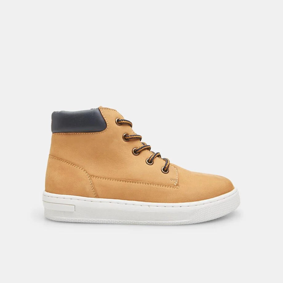 Fëmijë ankle boot me pjesën e sipërme të lëkurës që lejon ajrosje, kollare të mbushur, me lidhëse dhe zinxhir të brendshëm për veshje të lehtë, me sole të lehtë TPR, rezistente dhe kundër rrëshqitjes.