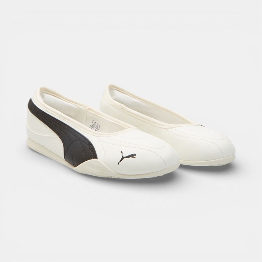 Elegante dhe e rehatshme, balerina për femra Puma CATCH SOLEIL kombinon stilin casual me funksionalitetin sportiv. E realizuar me pjesën e sipërme prej lëkure cilësore dhe me shollë sintetike të qëndrueshme, ajo ofron jetëgjatësi dhe rehati gjatë gjithë ditës.Pjesa e brendshme prej tekstili siguron ajrosje të mirë, duke e bërë perfekte për këdo që kërkon një këpucë të gjithanshme dhe në modë.