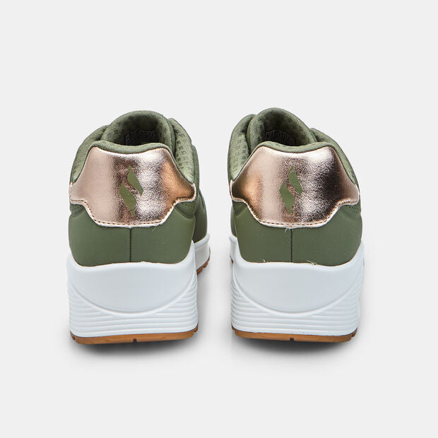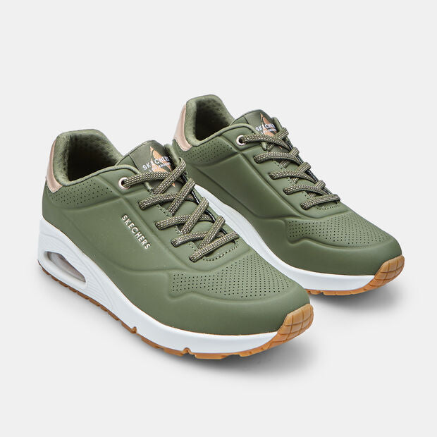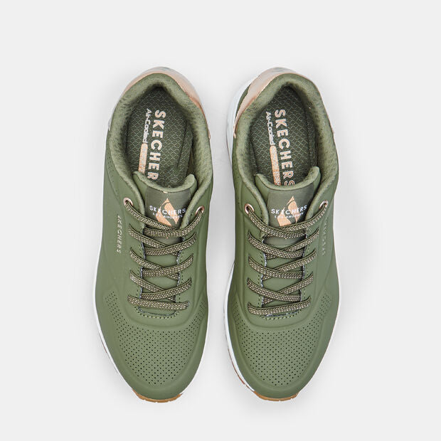 Sneaker Skechers është inovacioni ikonë që përdor ajrin e presionuar në një membranë të qëndrueshme dhe fleksibël për të ofruar lehtësi dhe amortizim gjatë lëvizjes.Njësia Air shtrydhet në momentin e goditjes, për t’u rikthyer menjëherë në formën dhe vëllimin origjinal për goditjen e radhës.