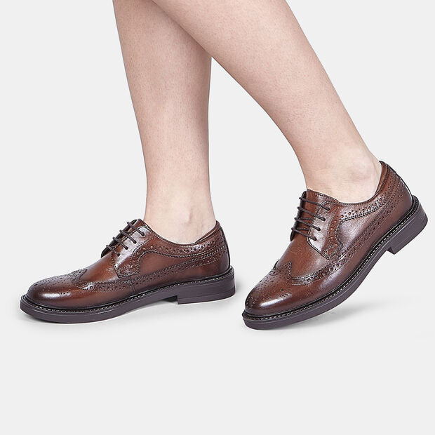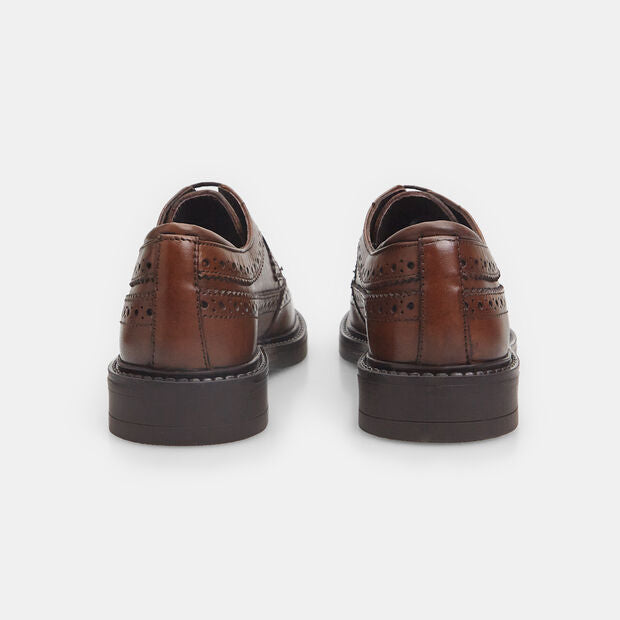 Këpucë stringate për gra, prej lëkure, me punim brogue në pjesën e sipërme, taban me qepje të dukshme, lidhëse me katër vrima, astar dhe shtresë të brendshme prej lëkure, si dhe taban TPR rezistent dhe antirrëshqitës.