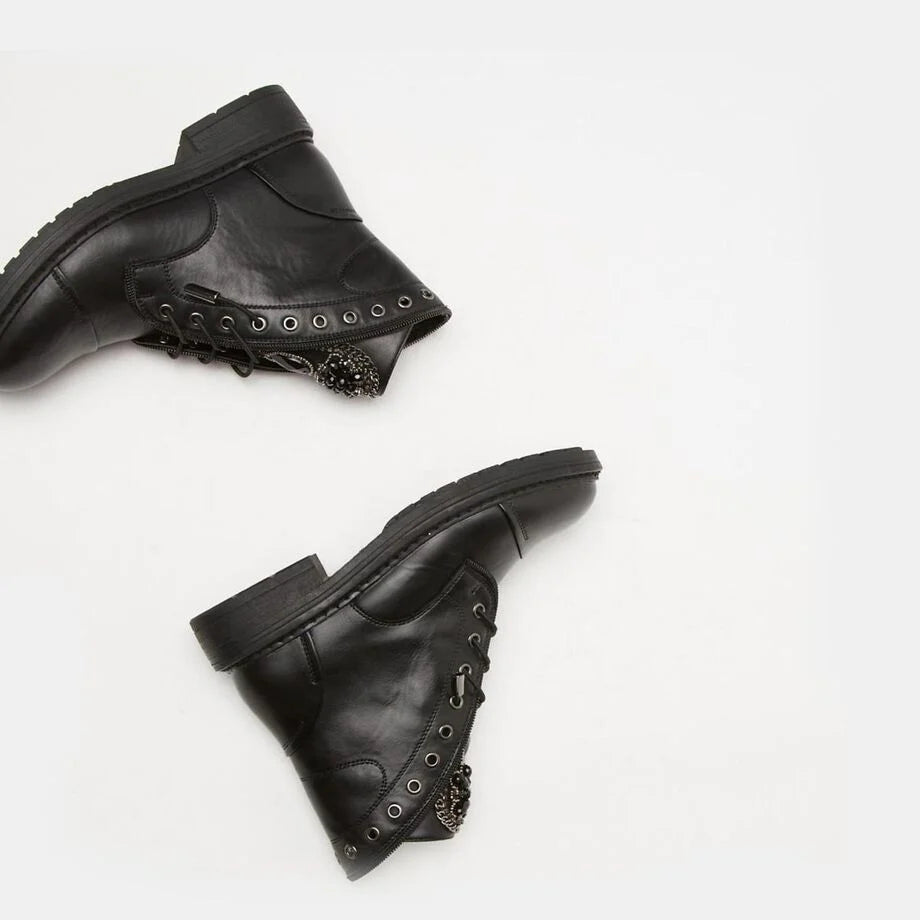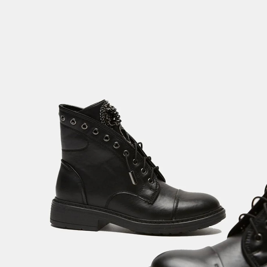 Zgjidh stilin tënd me kambalet për femra me thumba nga BATA! Këto çizme dimërore casual jo vetëm që ofrojnë një dizajn të guximshëm dhe modern, por gjithashtu garantojnë rehati dhe qëndrueshmëri. Të realizuara me pjesë të sipërme sintetike të fortë dhe shollë sintetike, ato janë perfekte për ditët e ftohta. Lartësia e takës prej 3,5 cm ofron një ngritje të lehtë pa kompromentuar komoditetin. Shto një prekje origjinaliteti në garderobën tënde me këta kambale unikë!