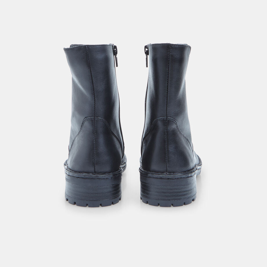 Çizmet për gra prej lëkure pa lidhëse, me zinxhir të brendshëm për ta bërë veshjen më të lehtë dhe me hapje anësore në pjesën e kërcirit, janë të pajisura me taban prej materiali të ngjashëm me gomën, që ofron rehati dhe qëndrueshmëri gjatë përdorimit.lartesia e takes 3 cm ndersa lartesia e cizmes 13 cm