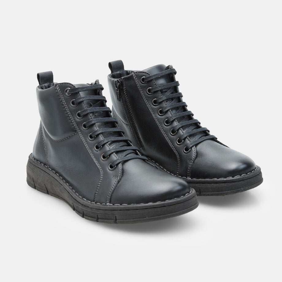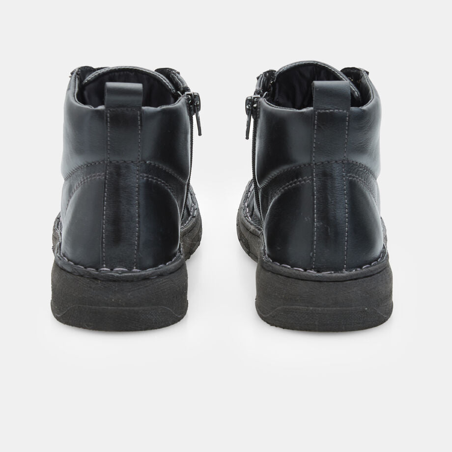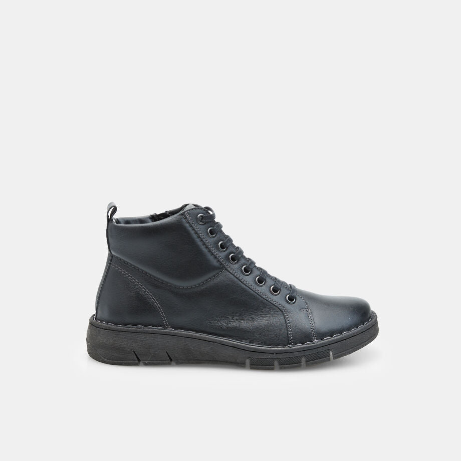 izmet për gra prej lëkure me lidhëse dhe zinxhir nga BATA janë zgjedhja ideale për ato që kërkojnë stil dhe rehati në jetën urbane. Të realizuara nga lëkurë e cilësisë së lartë, këto çizme ofrojnë përshtatje të përkryer dhe qëndrueshmëri të jashtëzakonshme. Me një takë 3,5 cm, ato garantojnë stabilitet dhe mbështetje, ndërsa tabani sintetik siguron kapje të mirë në sipërfaqe të ndryshme. Veshja e brendshme prej pëlhure shton edhe më shumë komoditet, duke i bërë perfekte për çdo rast casual.Lartësia e takës: 3 cm, Lartësia e çizmes: 9 cm