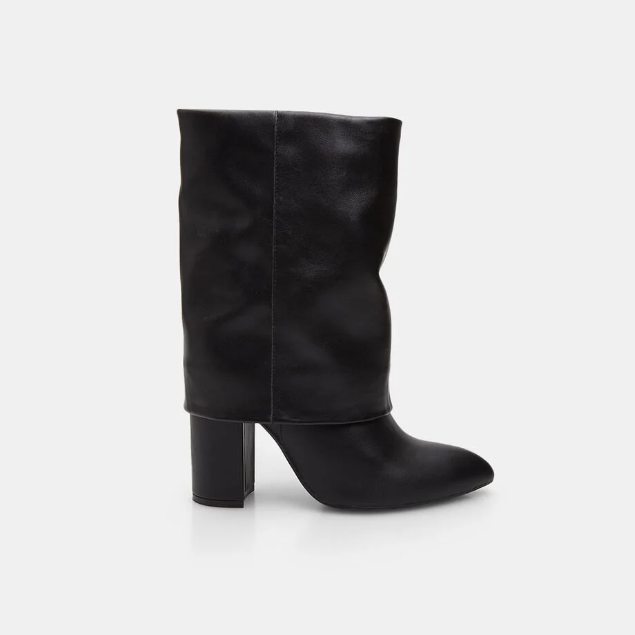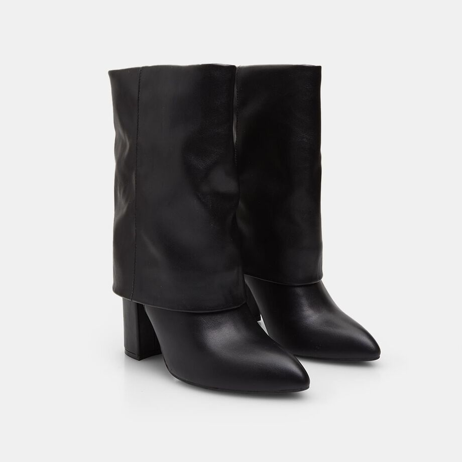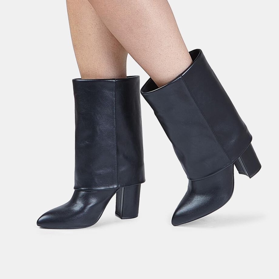 Çizme për femra BATA modeli "cuffed boots" me takë 10 cm, majë të gjatë dhe këmbë të përkulur, me taba prej gome sintetike.lartesia e qafes 18,5 cm