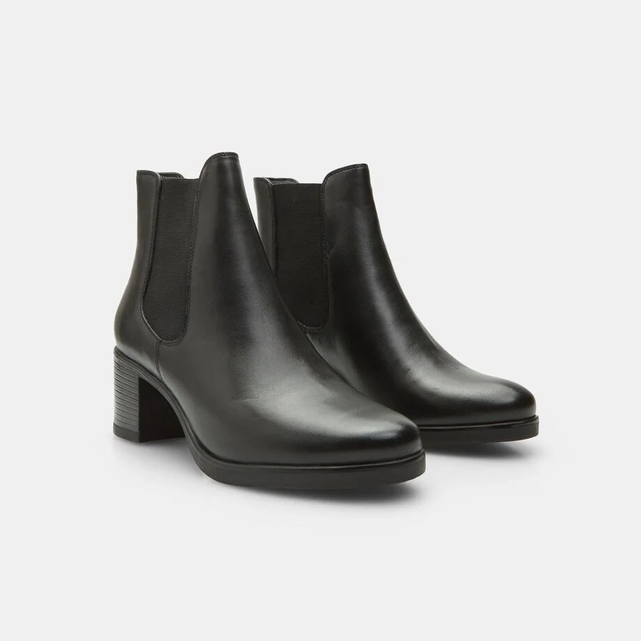 Shto një prekje stili në garderobën tënde dimërore me çizmet Chelsea me takë të gjerë nga BATA. Të realizuara në lëkurë me cilësi të lartë, këto çizme jo vetëm që ofrojnë një pamje elegante, por garantojnë gjithashtu rehati dhe qëndrueshmëri. Taka e gjerë prej 6 cm siguron stabilitet, ndërsa sholla sintetike ofron një kapje të sigurt në sipërfaqe të ndryshme. Të përsosura për çdo rast, këto çizme janë një domosdoshmëri për çdo grua që dëshiron të bashkojë modën me funksionalitetin. Taka 7 cm