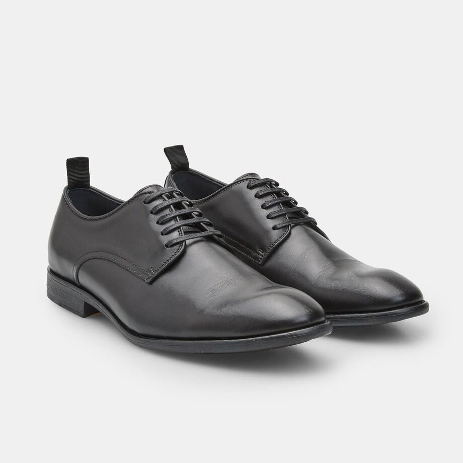 Këpucë prej lëkure, me siluetë elegante Derby. Mbyllje me lidhëse për një përshtatje të sigurt.