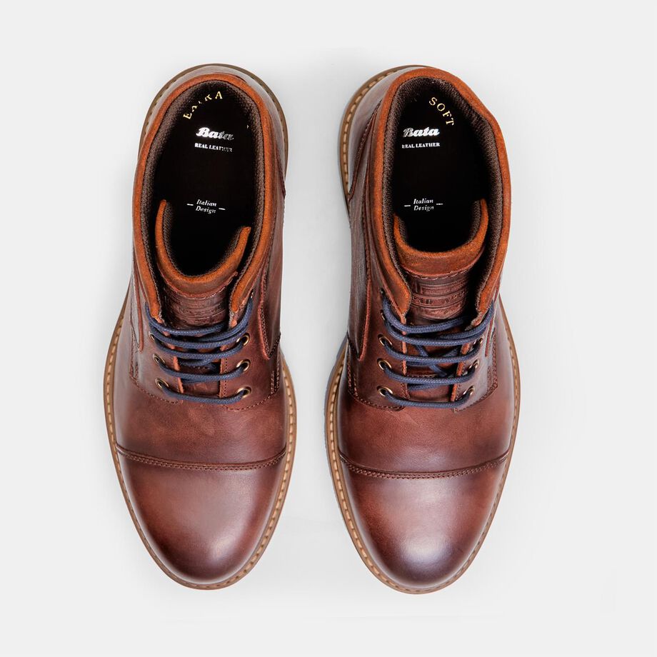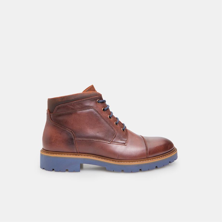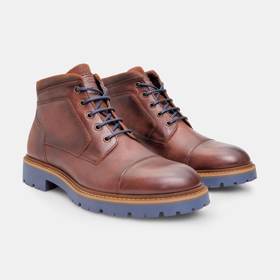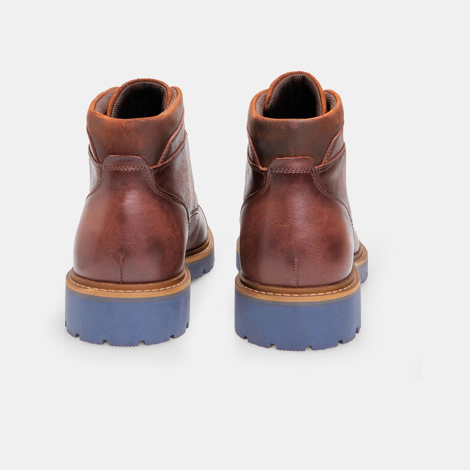 cizme e shkurter me lidhëse për burra, i punuar me lëkurë, me taban në material të ngjashëm me gomë me ngjyrë dhe me lidhëse të koordinuara. Ka take të mbushur në pjesën e thembrës, profil të tabanit në kontrast, shtresë të brendshme (shtrojë) prej lëkure dhe astar prej materiali tekstili.