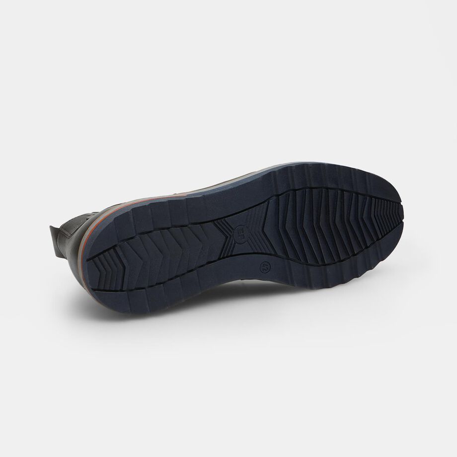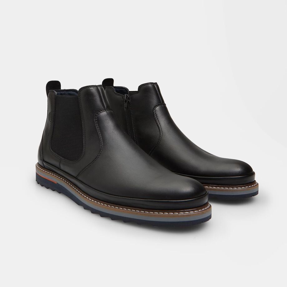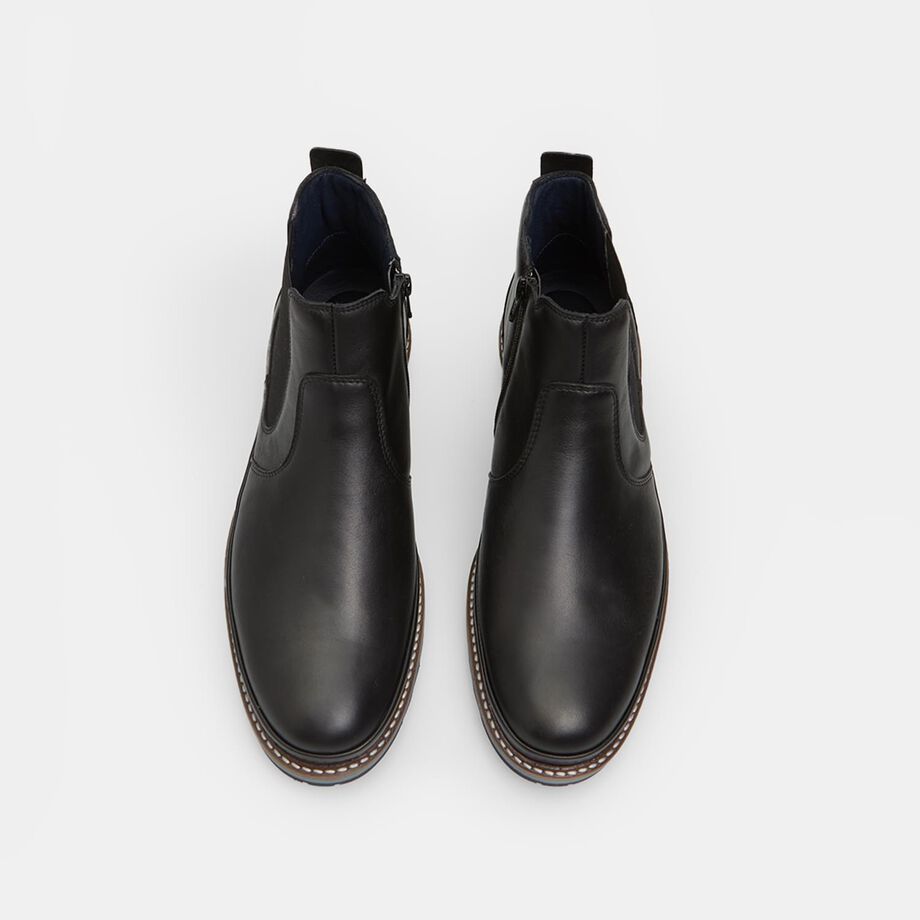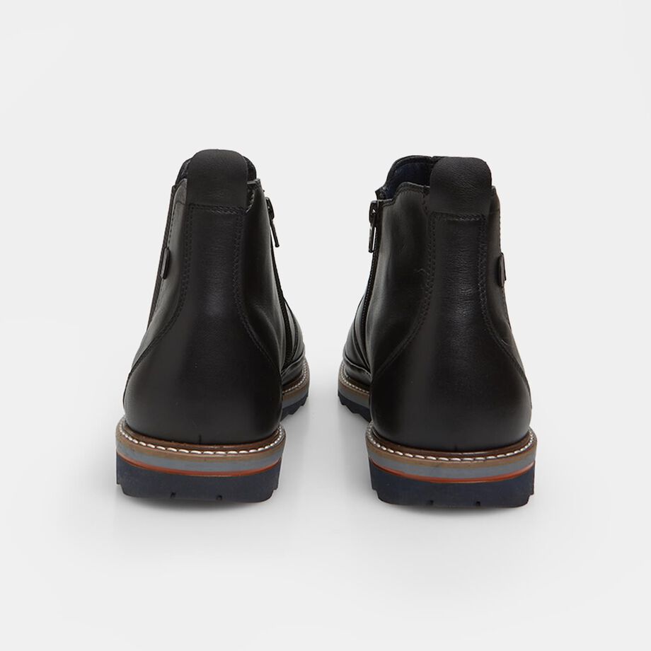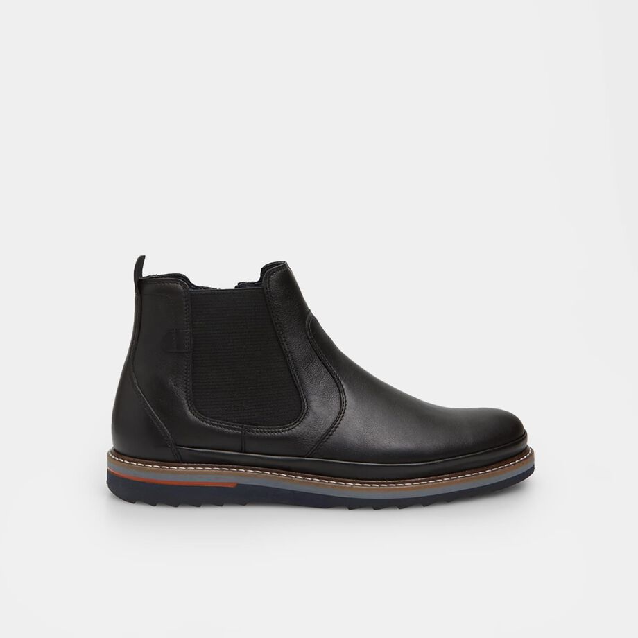 Stivaletti për meshkuj prej lëkure me shirit elastik anësor për më shumë rehati dhe me zinxhir të brendshëm për ta bërë veshjen më të lehtë. Të pajisura me taban TPR të lehtë dhe antirrëshqitës me qepje të dukshme, me shtresë të brendshme prej tekstili dhe mbështjellje të brendshme prej lëkure.