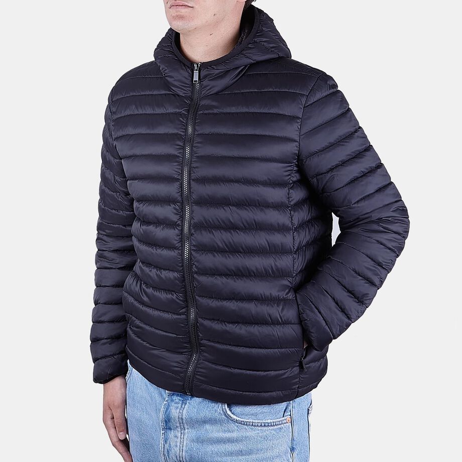 Xhaketë e mbushur për meshkuj me jakë të drejtë dhe pjesë të brendshme me kontrast ngjyrash.