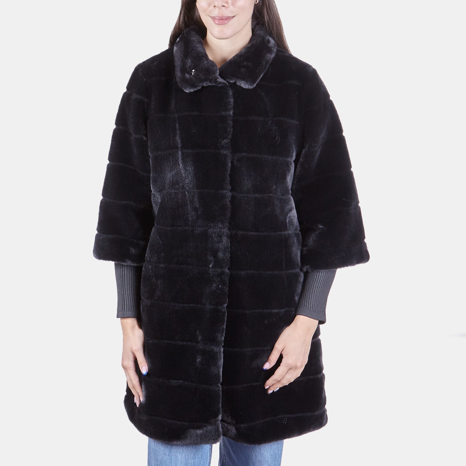 Xhup femrash ne material pellush artificial shume e ngrohte me menge me zinxhir qe mund te hiqen dhe vihen sipas deshires