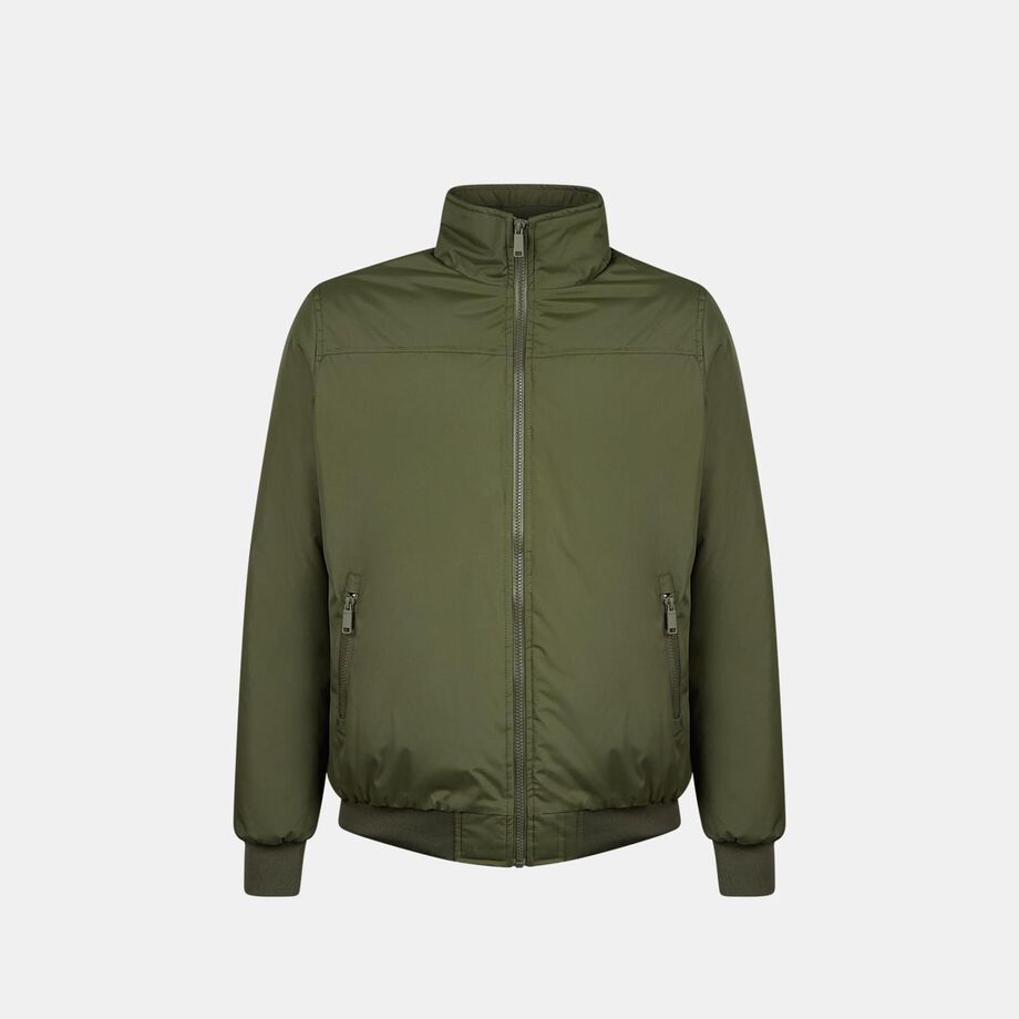 Xhaketë për burra, model bomber, me mbyllje qendrore me zinxhir, mëngë të gjata dhe jakë të lartë. Ka triko elastike në mansheta dhe në bel për një përshtatje më komode dhe stil të rregullt. E pajisur me xhepa anësorë me zinxhir, të përshtatshëm për mbajtjen e sendeve personale në mënyrë të sigurt.